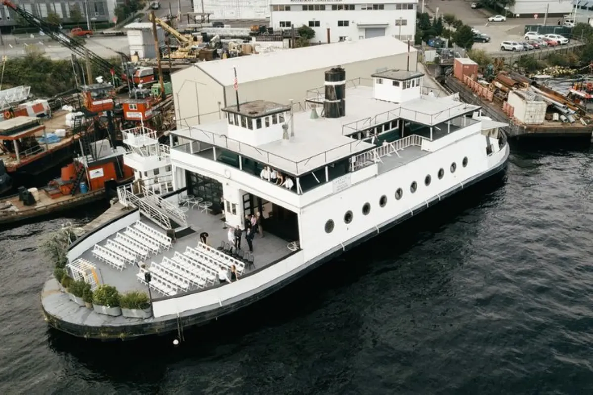 “The MV Skansonia is a beautiful and unique venue. I’ve photographed weddings and events here and am always happy with the lightning and ambiance. It’s dreamy. The staff are kind and helpful and the layout of the space works really well for large groups. All that and I haven’t even mentioned the stunning views of downtown Seattle and Lake Union… unbeatable.”