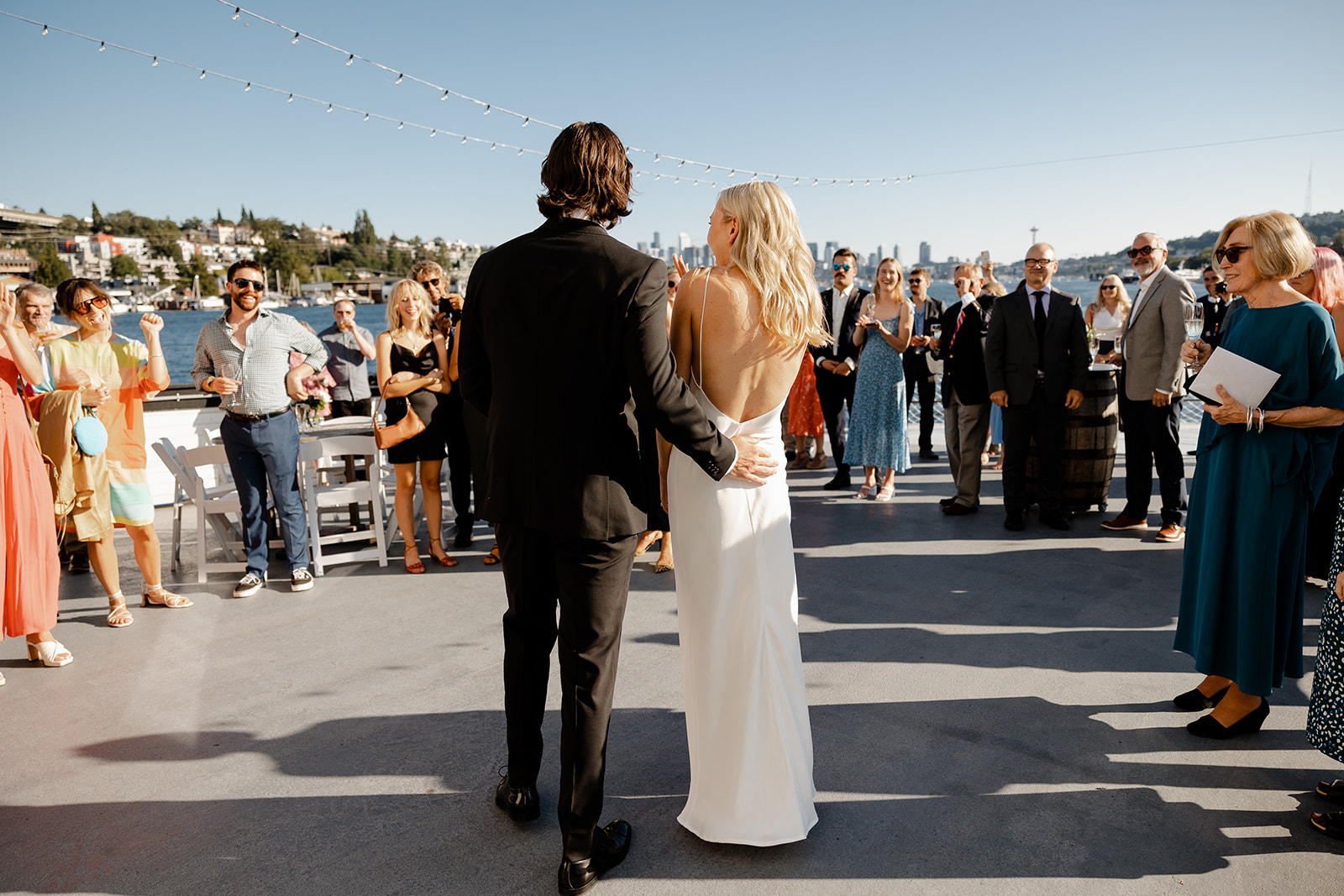 "The MV Skansonia was a dream venue and their team was a dream to work with! From the beginning, Sarah and Ruby answered every question we had -- from our first tour to planning meetings to tastings to the day-of. Can't recommend working with them enough. The venue itself is stunning and the views are incredible. The in-house food was of high quality and the bar options were great.”