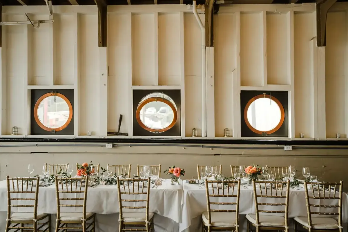 Indoor-Outdoor Versatility: Host your ceremony on the bow and reception inside, with roll-up glass doors and a covered promenade for weather flexibility